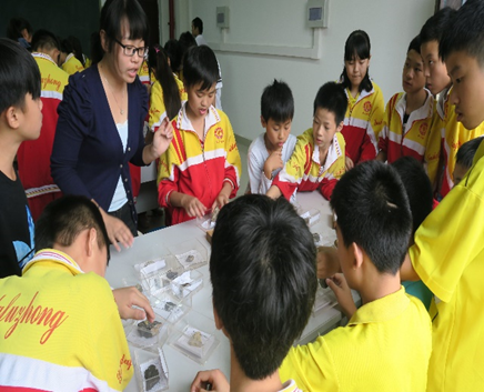 在地质学专业研究生何维、何兴华以及古生物专业研究生王圆的讲解和指导下,中学生们大饱眼福,了解认识了海百合、三叶虫以及诸多其他矿物和岩石标本。