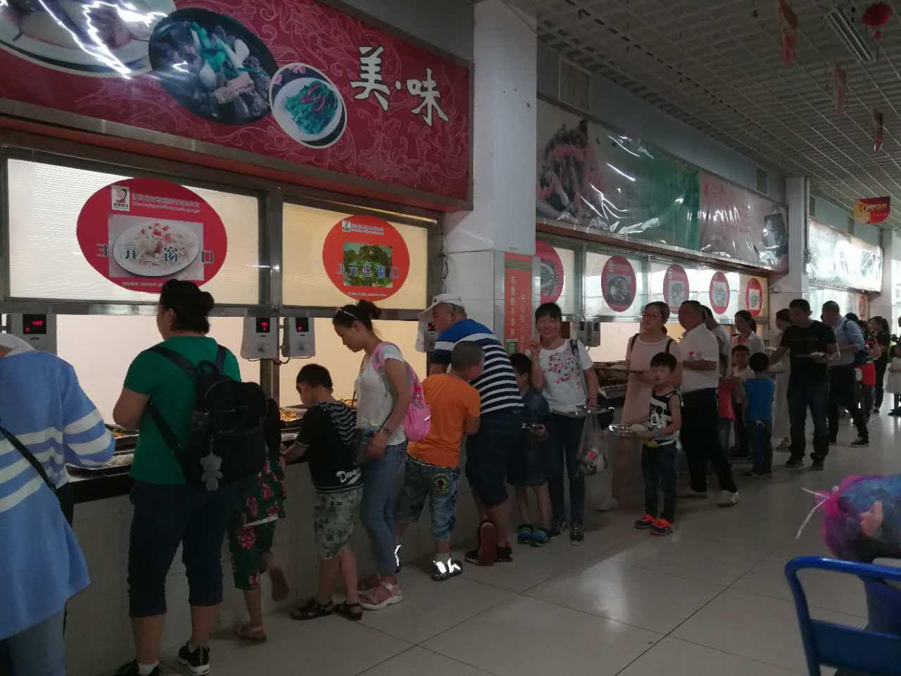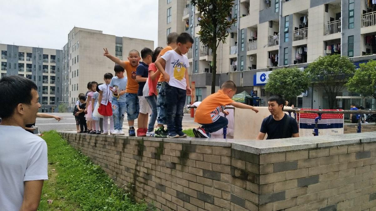 在贵州大学一期校园里,孩子们做起了“勇敢者”的游戏,游戏结束后,在家长的陪同下参观和体验了贵州大学学生食堂。
