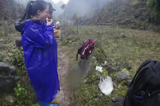 野外考察时,能有一口自己带的干粮吃已经很满足了(资环学院供图)