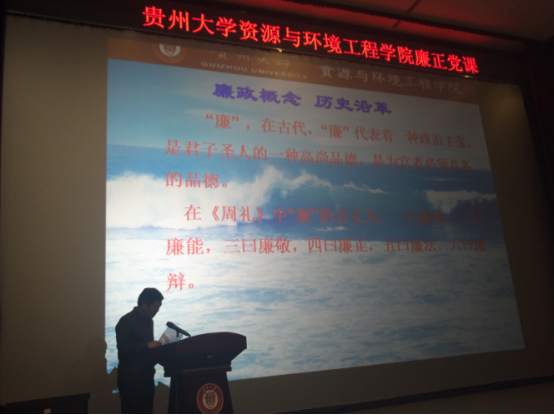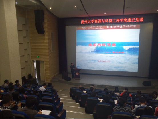 2017年10月13日下午3点,由资环学院党委组织学院全体党员在图书馆报告厅进行“廉政”党课的学习。