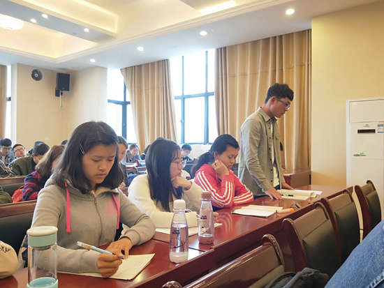 随后,徐进老师以十九大报告中提到的“青年兴则国家兴,青年强则国家强”为引导,希望参加理论学习的同学们要坚定共产主义的理想信念,坚定跟党走的决心和勇气,做一名有理想的新时代青年。同时要练就过硬的本领,不仅在学习方面要争当标兵,也要在社会活动中积极踊跃,展现出大学生党员的风采。最后要求同学们要有担当,要关心国家的前途和命运,关心中华民族的未来,关心人民的幸福,强调国家命运与个人幸福紧密相连。同时要求学生党员,无论是在现实生活中还是在网络空间上,都要端正自己的言行,积极传播向上向善的正能量。