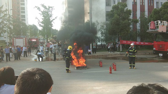 随后,消防官兵们为了让同学们能增强防火意识,为同学们演练了如何使用灭火器。至此,本次演练圆满结束。