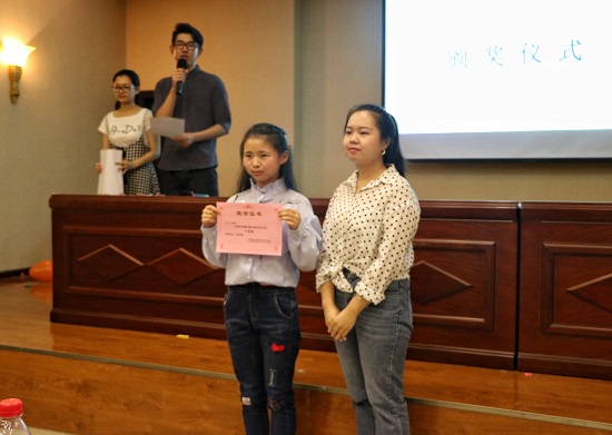 最后,陈汇茹做了点评。她表示,在音频剪辑中背景音乐的选取在很大程度上影响作品效果的传达。她强调,声音是传递内心的媒介,声音主次体现明显,添加的背景音乐结构布局合理具有极大的重要性。大赛接近尾声,主持人宣布获奖名单,获得一、二、三等奖的分别是孙良云、彭衍崧、刘学涵;获得甜美声音奖的有罗思捷、裴金萍、惠云三位同学。各位评委分别为获奖选手颁发证书及奖品并合影留念。