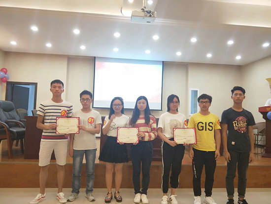 紧接着进入第二轮抢答题环节,首先由工作人员示范抢答器的正确使用方法以及讲解抢答规则。每一轮抽取三支队伍进行抢答。在该环节中7号队伍和15号队伍以绝对的抢答速度获得小组全部题目的抢答权。抢答环节之后,进行加时风险题竞赛,通过层层角逐。获得本次比赛的一等奖队伍是来自环科党支部的7号队伍,此外,还有八支队伍获得二等奖、三等奖和优秀奖。