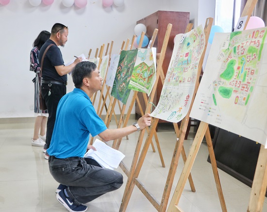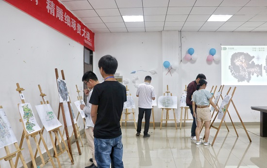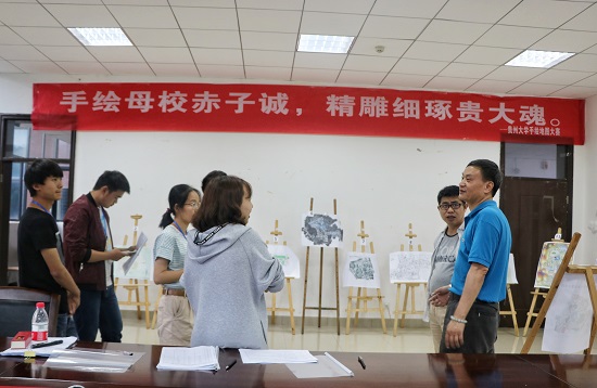 评审现场,老师们分别为全手工手绘地图和电脑绘图进行打分,期间评审老师还耐心点评参赛作品。胡开仁老师从部分作品中点出“技术性与艺术性”相结合的重要性,他还举例说明绘图的艺术性、技术性、实用性等知识,并高度评价了本次活动对多彩校园文化的推动作用;范金煜老师从专业角度点评了手工绘图作品图纸重点表达、配色、绘图规范性等;刘沛老师则提到地图不是艺术品,但它具有艺术性和创意性,他指出手绘地图作品不仅有图名、方向、比例尺的要求,而且还应具有艺术性,注重创意表达角度。比如贵大特色就是绿水青山和花园,而文化上的标志性建筑图书馆和鼓楼也应重点展现。此外还提到电脑绘图作品需要表达的地图性更应该精确,比如道路和建筑方位应准确无误。