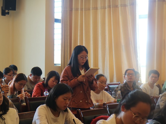 陈成老师提到关于心理知识竞赛答题、贫困认定出现的相关问题、励志奖学金和等级奖学金等问题做了相关解答。接着,漆晗老师谈到学院本科生党总支情况、毕业生生源地审核、就业生推荐表和三方协议、学生档案的归档等相关重要事宜。
