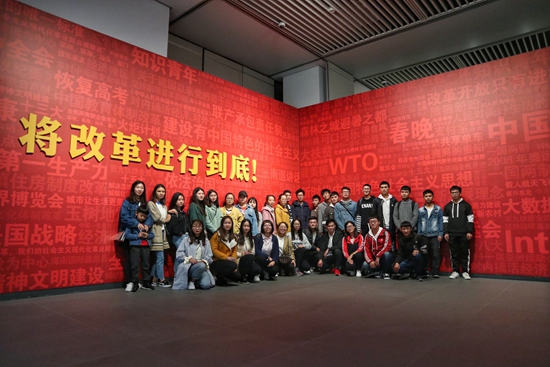 活动伊始,同学们在讲解员的带领下,参观了改革开放四十周年纪念馆。纪念馆以四十年来人民生活的变化为展览主体,采用了图片、实物、纪录片等方式将当时场景重现在同学们眼前。参观过程中,水文与水工党支部书记冯娜说:“2018年,是我国改革开放四十周年。贵州省博物馆吸纳了贵州上千年的文化,同时也充分展现了贵州改革开放四十年的辉煌成就,突出展示了改革开放的重要作用。”