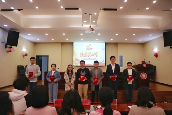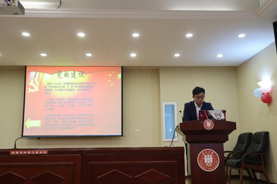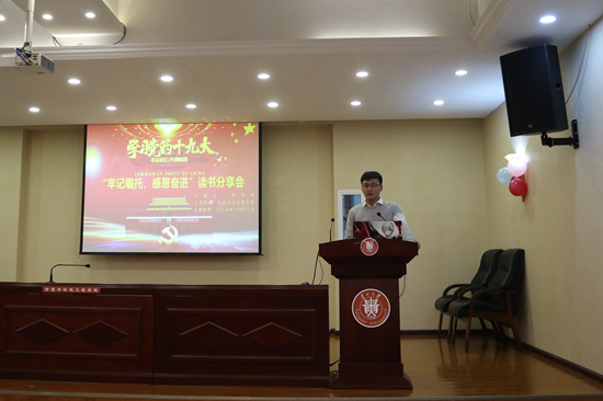 各个党支部通过PPT的形式分享学习党的十九大报告精神和习近平总书记重要讲话精神读书心得的方式进行,每个党支部选择两个分享的主题,最终评出6名讲解优秀的同学颁发证书。