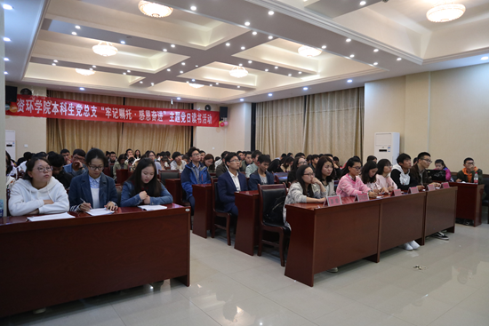 贵大资环网讯(吴飞龙 报道|摄影 周克家为了深入学习贯彻党的十九大精神,切实鼓励青年学子弘扬党的十九大精神,10月27日,我院本科生党总支在资环楼436学术报告厅开展“牢记嘱托·感恩奋进”主题党日读书活动。本科生党总支书记漆晗老师、我院7位党支部书记出席活动并担任评委,全体学生党员、发展对象以及积极分子参加活动。
