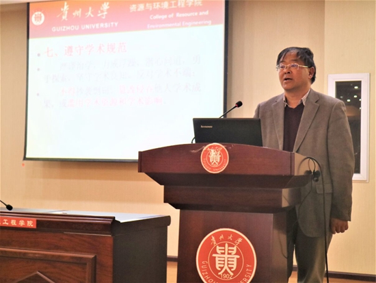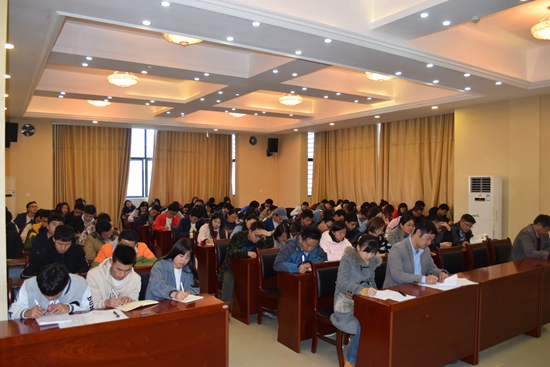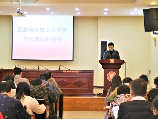 贵大资环网讯(吴飞龙 报道|摄影 赵腾 幸刚艳) 11月29日下午,我院学风建设推进会在资环楼436学术报告厅召开。我院党委书记滕召华、党委副书记徐进、副院长周丕康出席会议,我院学生科刘红迎老师主持本次会议。