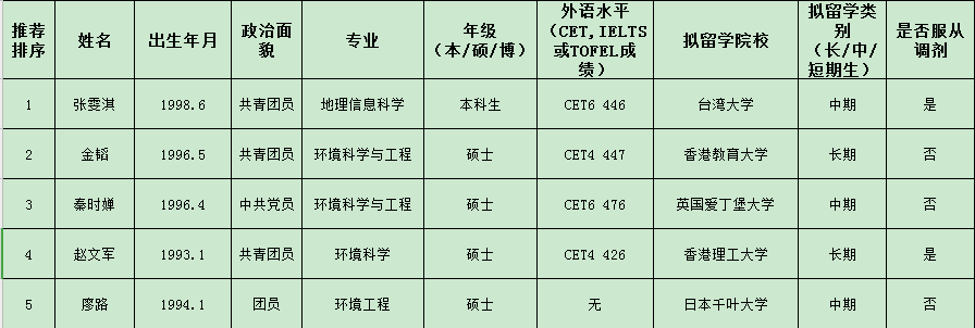 2019年贵州大学资源与环境工程学院“千人留学计划”拟推荐名单公示