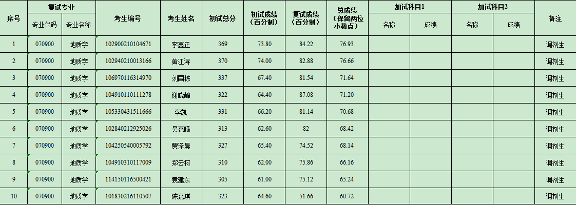 贵州大学2020年资源与环境工程学院硕士研究生复试结果公示(二)