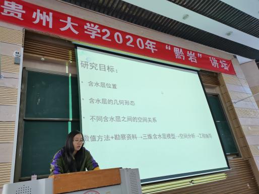 (贵大资环网讯 程斌|报道)2020年11月15日,由贵州大学资源与环境工程学院、喀斯特重点实验室主办,地质工程系、贵州省山地地质灾害防治工程技术研究中心承办的贵州大学2020年“黔岩”学术讲坛在贵州大学西校区西楼117报告厅成功举办,本次学术讲坛的主题为“岩溶区典型水文地质与工程地质问题”。