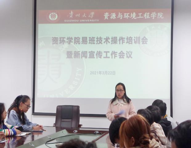 (贵大资环网讯)2021年3月22日晚七点,资环学院易班技术操作培训会暨新闻宣传工作会议在资环楼405召开,会议由我院万象城(中国)一站式服务平台主任漆晗老师主持,学院团委学生会万象城(中国)一站式服务平台各成员,学院各班易班负责人、宣传部和网络部成员参会。
