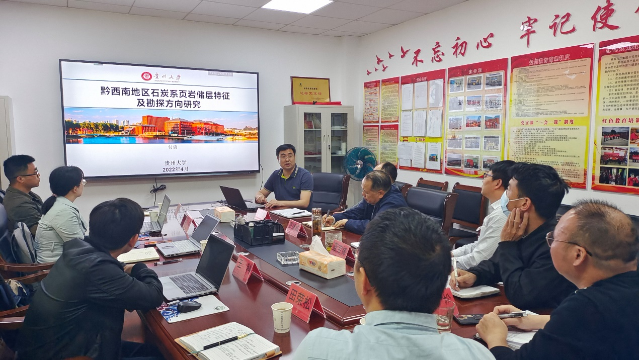 贵州能源产业研究院总工程师蓝宝锋听了研究团队汇报表示对贵州页岩气勘探开发很有信心,要加大贵州复杂地质条件下页岩气基础研究,通过与贵州大学科研团队合作实现贵州页岩气勘探开发“降本增产,增储扩区”。