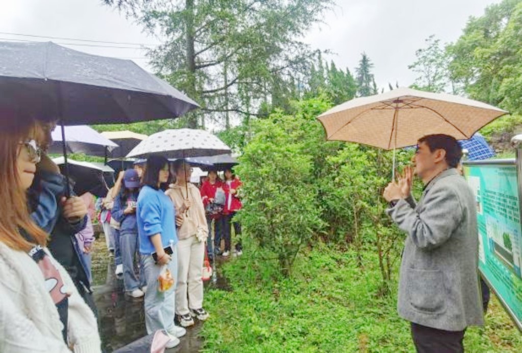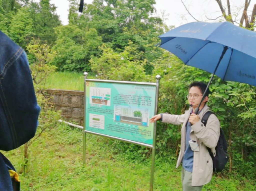 在参观结束后,同学们移步室外,由李彦澄老师给大家介绍人工湿地的结构及功能。接着,又由吴永贵老师给我们讲述人工湿地的生物多样性以及生物多样性的生态价值和其对环境的意义。吴老师在讲述中提到:“人的命脉在田,田的命脉在水,水的命脉在山,山的命脉在林草,‘一林一草’都是生物多样性保护的意义。”