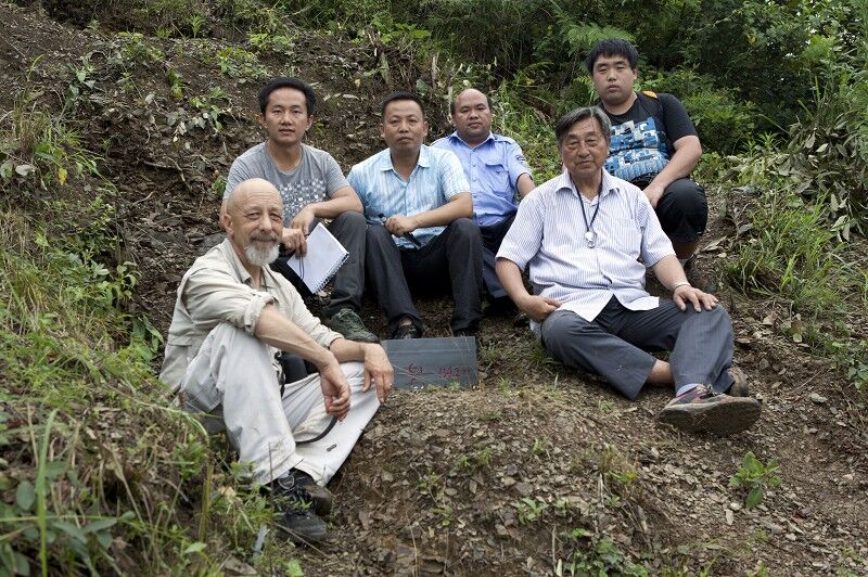 4  20136月,杨宇宁(左二)陪同时任寒武系第五阶界线工作组副组长Fredrick A. Sundberg博士(左一)和赵元龙教授(左五)考察丹寨南皋三湾剖面