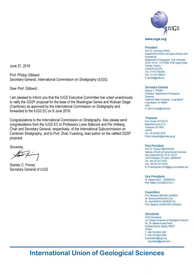 5  2018621日,国际地科联正式签署寒武系苗岭统和乌溜阶“金钉子”的批文
