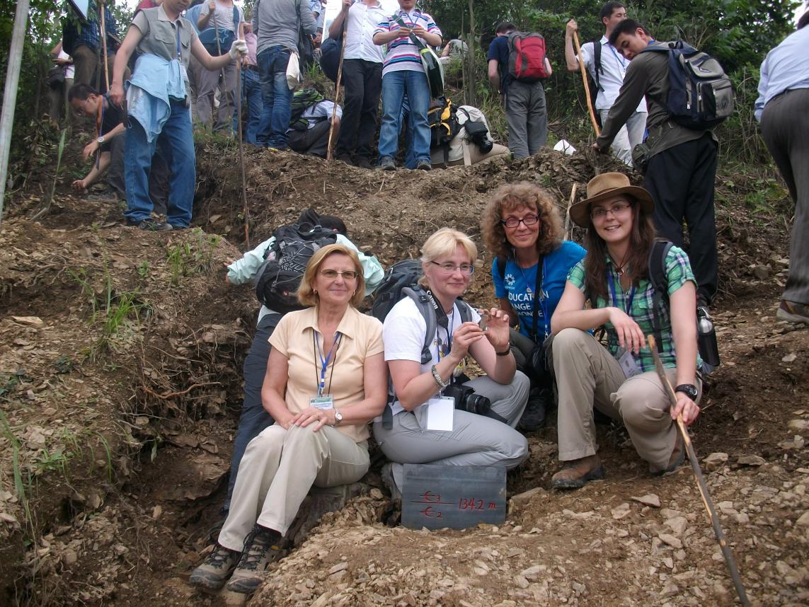 3  20126月,第17届国际寒武系内部再划分国际会议代表参观丹寨南皋三湾剖面,在第5阶底界碑处留影(左一为时任国际地层委员会寒武系分会副主席、瑞典乌普萨拉大学Moezydlowska-Vidal教授;左二现为寒武系分会秘书长、波兰华沙大学Linda教授)