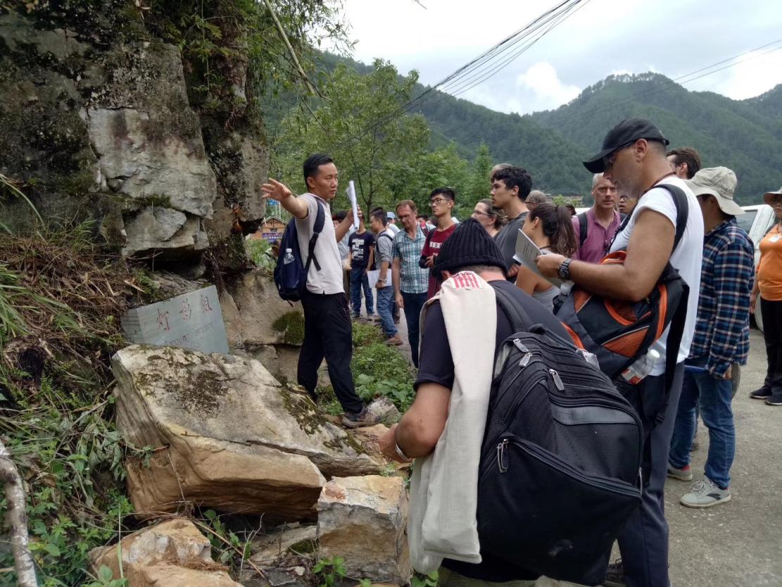8  2018818日,杨宇宁副教授(左一)在剑河县五河剖面给国际埃迪卡拉系-寒武系科学大会的与会代表讲解地层序列