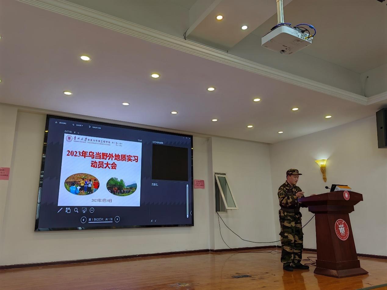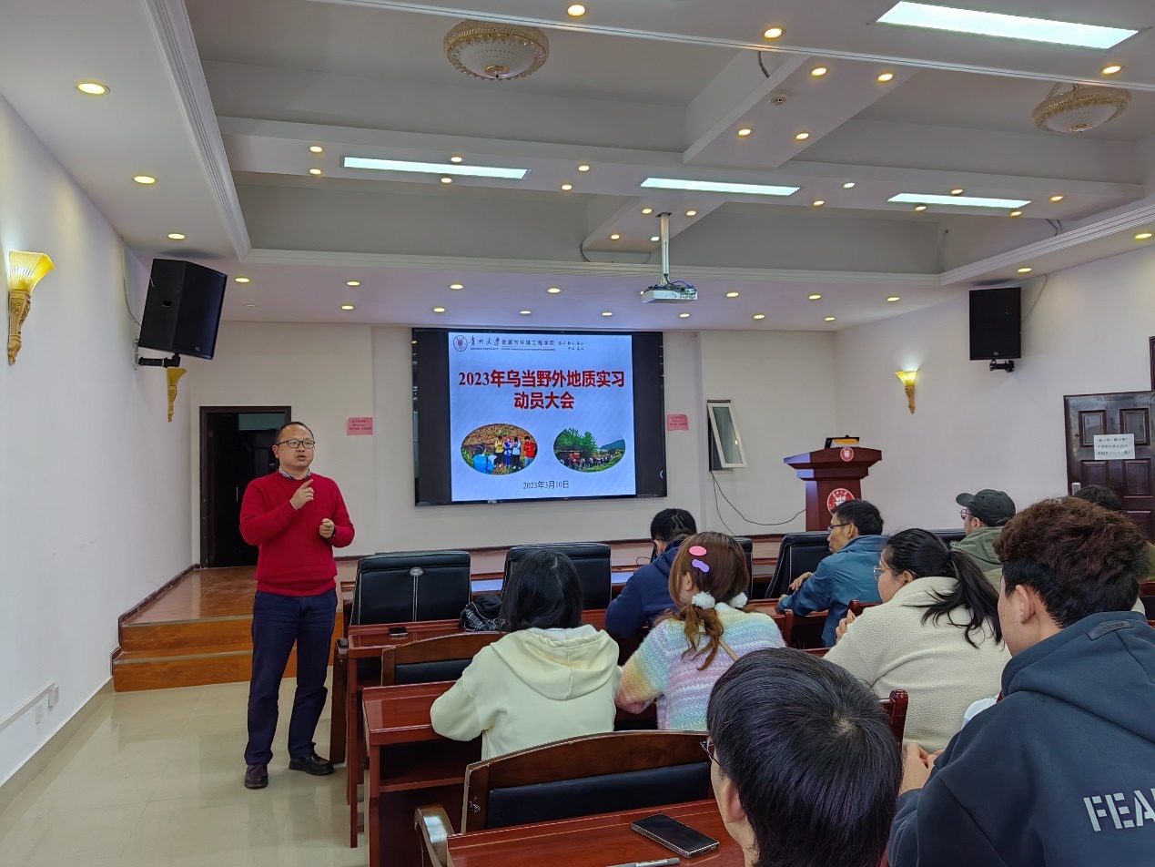 随后,郭川老师向同学们介绍了野外实习的重要性及在学生专业培养中的意义、以及乌当野外地质实习的基本内容,强调本次实习是理论知识与实践结合的重要契机。并介绍了实习过程中的纪律和注意事项,强调安全是重中之重,要确保安全、圆满完成本次实习活动。