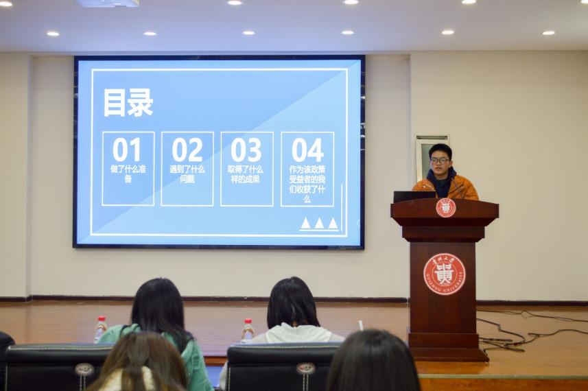 各组参赛选手以PPT的形式,展示自己小组在寒假期间合作完成的国家资助政策宣讲活动的成果。其中,摸黑小队讲述了自己在凯里一中进行的资助政策宣讲,小组成员通过在班级里宣讲,详细讲解各种国家资助政策,积极热情地与同学们互动交流,针对贫困学生进行谈话谈心等方式宣传国家的相关资助政策,分享受资助的学长学姐们如何在国家政策的帮助下勤奋学习、成长成才的励志故事,让同学们对国家资助政策有更深层次的认识,获得了在场评委的一致好评。