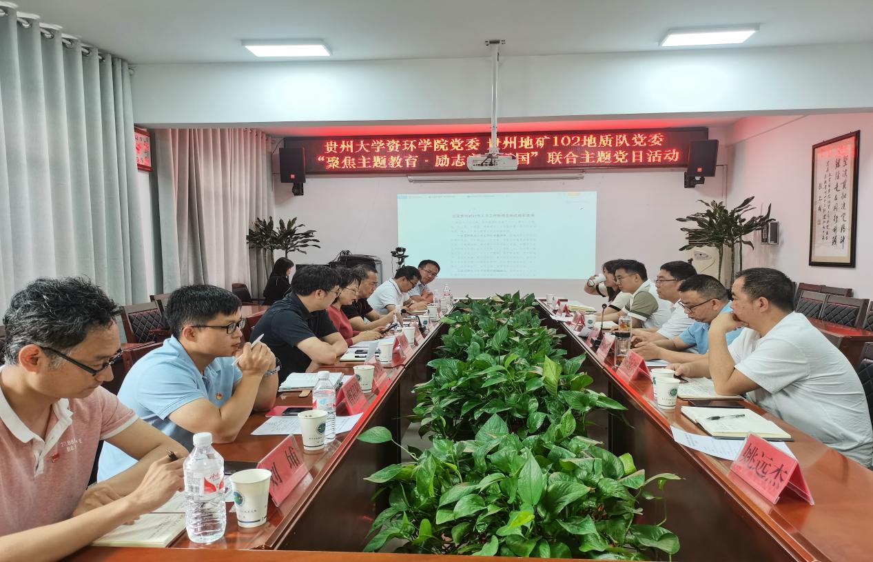 5月26日--5月27日,为扎实推进学习贯彻习近平新时代中国特色社会主义思想主题教育走深走实,贵州大学资源与环境工程学院党委书记李波、正处级组织员郭龙翔、副院长付勇带领资环学院各科室负责人及各教工党支部书记共11人赴遵义地矿局102地质大队开展“访企拓岗”访企拓岗促就业暨“聚焦主题教育·励志实干报国”主题党日活动。