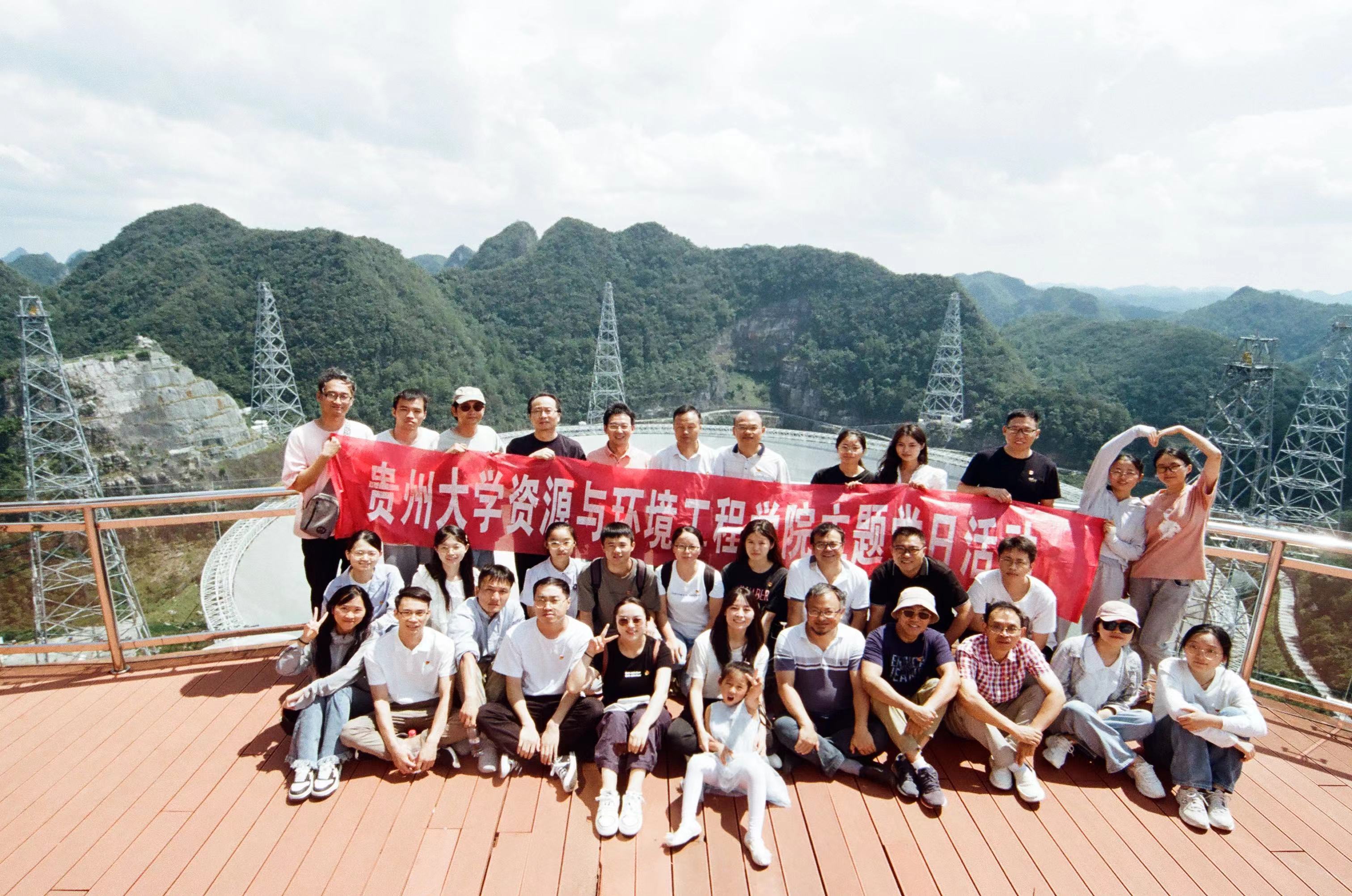 为大力弘扬科学家精神,激发广大党员同志创新发展内生动力,推动我院广大党员干部积极将各项工作融入生态文明建设及高质量发展中,学院党委以“弘扬科学家精神,推动高质量发展”为主题,在正处级组织员郭龙翔同志的带领下,于9月23日组织学院所属各党支部50余名党员同志赴科学家精神教育基地-平塘县“时代楷模”南仁东先进事迹馆、500米口径球面射电望远镜(FAST)、平塘国家地质公园等地进行参观学习。