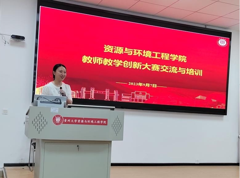 为深入学习贯彻习近平总书记关于教育的重要论述,落实立德树人根本任务,助力高校课程思政和“四新”建设,推动信息技术与教育教学融合创新发展,引导高校教师潜心教书育人,学校下发了《关于举办贵州大学第四届教师教学创新大赛的通知》及相关参赛文件。2023年9月7日上午,资源与环境工程学院启动了教师教学创新大赛交流与培训工作,主讲人为获得第三届全国高校教师教学创新大赛新工科副高组一等奖的优秀校友、贵阳学院唐薇老师。在各教研室的组织下,学院部分青年教师及及部分拟参赛选手30余人参加了本次培训。
