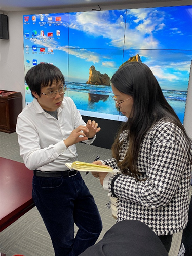 北京大学沈冰教授与学院新进特岗李晓伟教授就基金申报问题进行交流