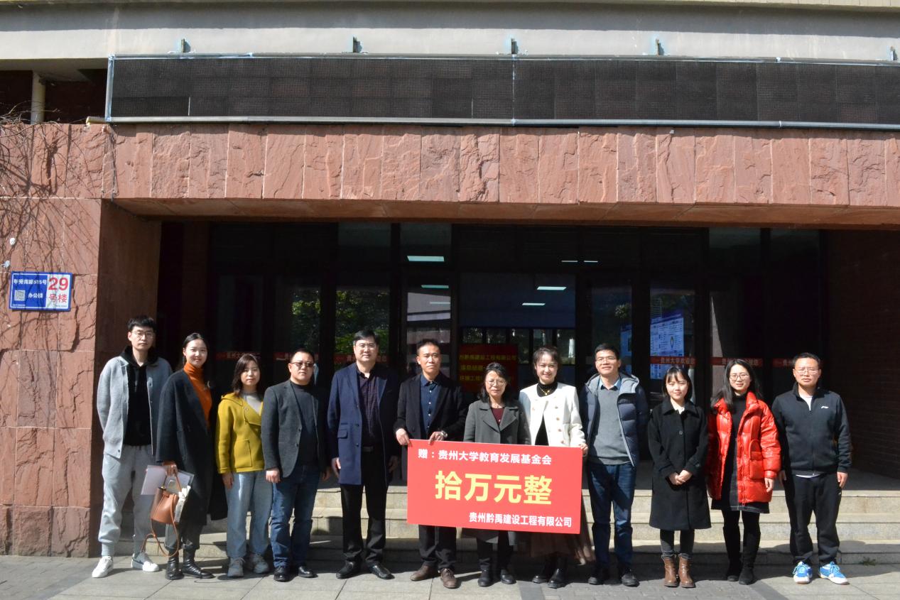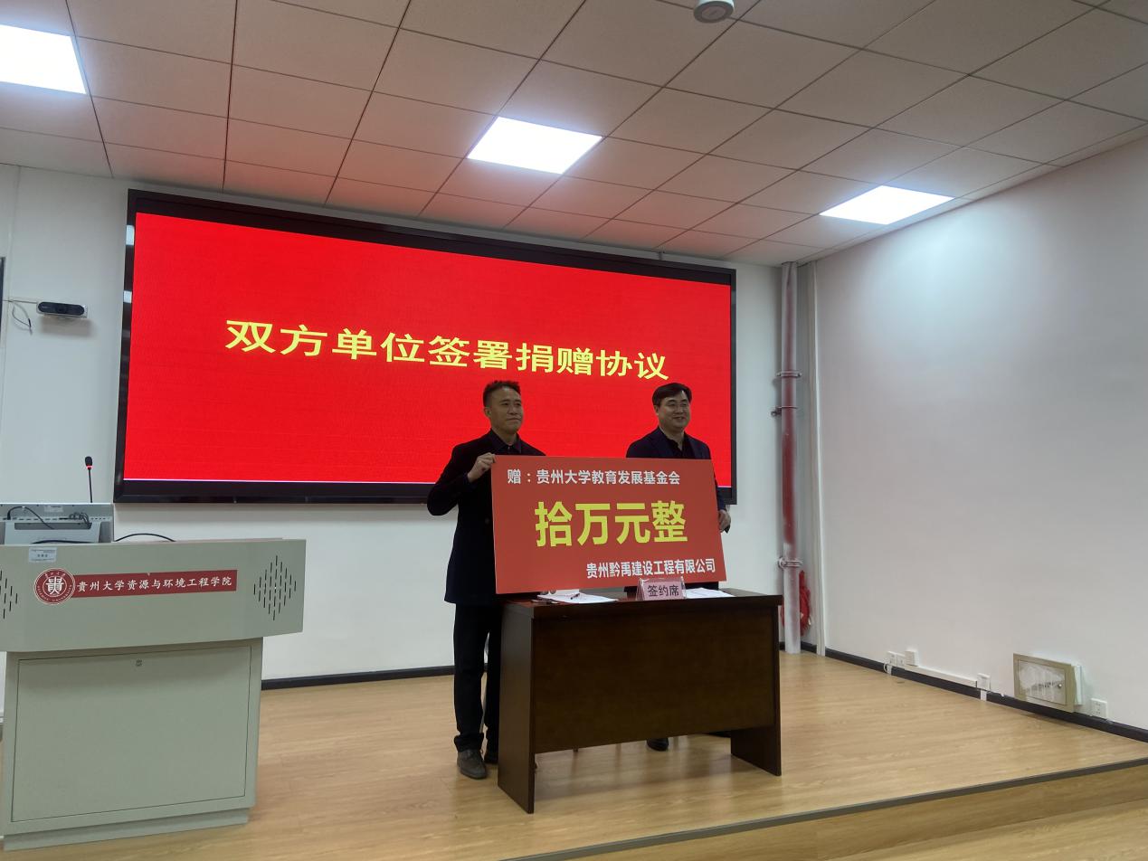 2024年3月4日下午,贵州黔禹建设工程有限公司向贵州大学资源与环境工程学院捐资助学仪式在资环楼521会议室举行。贵州黔禹建设工程有限公司董事长王艳、总经理王淳、副总经理陈正中、人力资源部刘璐和财务副总张细琴、资源与环境工程学院党委书记李波、学院副院长付勇、副院长吴起鑫以及罗敏、刘红迎、唐明明、闵思雨老师和80多个学生代表出席了捐赠仪式。