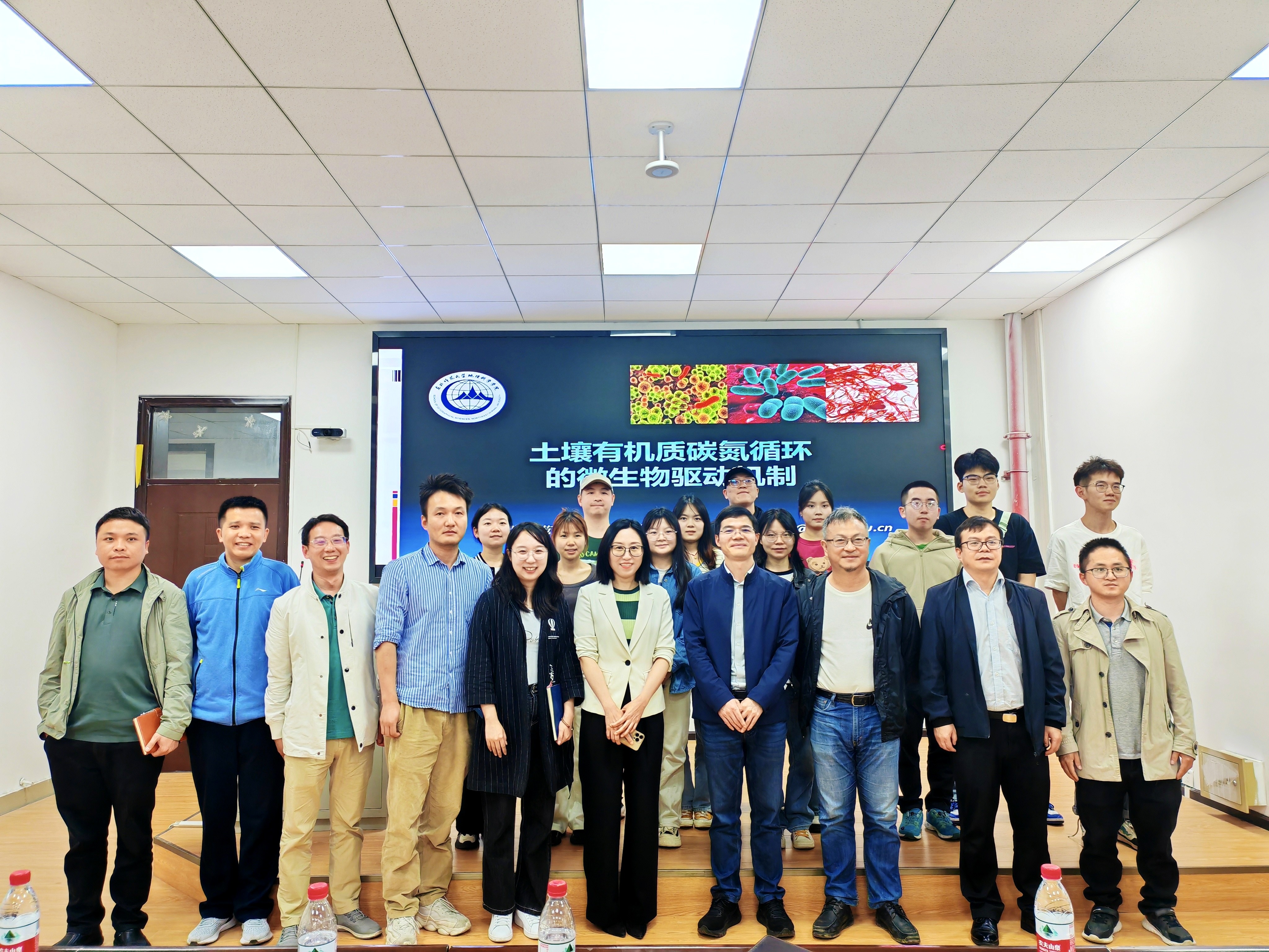 白娥教授长期从事土壤地理学和全球变化研究,采用稳定同位素技术研究土壤生物地球化学循环、生态系统固碳及其影响机制、全球变化及生态系统功能评价,服务我国双碳战略和生态文明建设。本次报告围绕土壤有机质碳氮循环与微生物驱动这一热点话题展开,介绍了该领域的研究背景及最新进展。白娥教授从土壤有机质、土壤微生物、土壤有机质碳氮循环的微生物驱动作用、土壤有机碳稳定性的微生物机制和微生物生物量碳的全球格局等方面,将复杂的科学概念化繁为简,深入浅出的阐述了微生物驱动下的土壤有机质碳氮循环过程及作用机制,加深了与会师生对环境土壤科学的系统认识。
