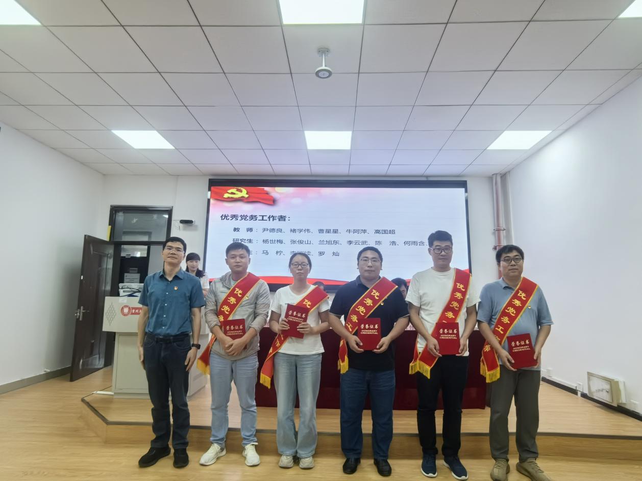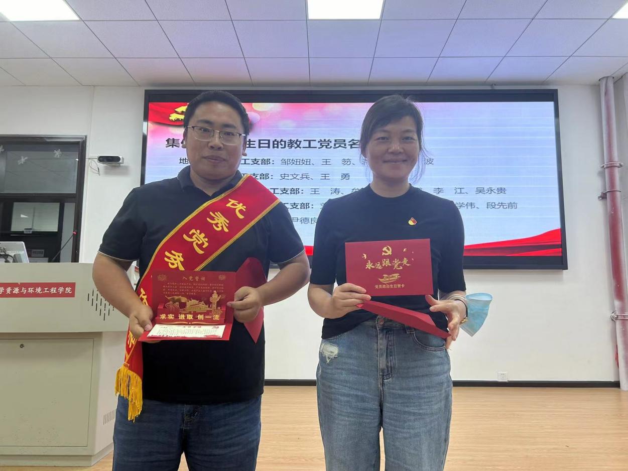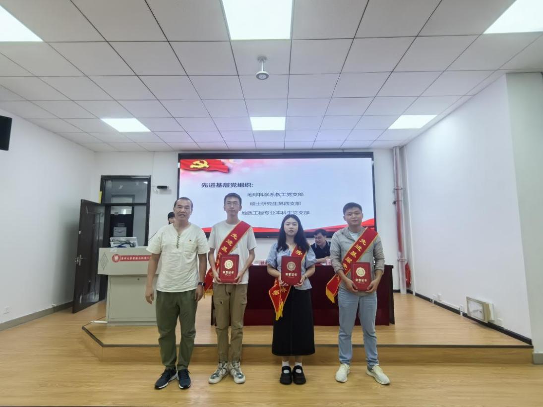 接着进行了“两优一先”表彰大会,刘红迎副书记宣读了资环学院“两优一先”表彰决定。付勇院长、吴起鑫副院长、郭龙翔书记分别为优秀共产党员、党务工作者及先进基层党组织颁奖,表彰获奖个人和集体在学院建设中积极发挥的党员先锋模范作用和党组织的战斗堡垒作用。