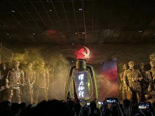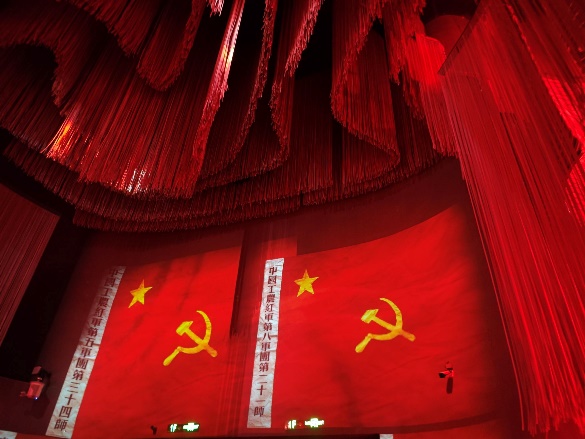 伟大征程展馆分为五个展区,分别是无名英雄展区、血火洗礼展区、伟大转折展区、砥砺征途展区以及胜利丰碑展区。在无名英雄展区中,以全息影像模式将红军战士的形象展现出来,给人以热血沸腾之感。这些无名英雄为了革命事业付出了自己的生命,他们用生命燃起火焰,以点亮了万家灯火。转场时,观众与红军战士一同开启大门,进入下一展区,身临其境,感受深刻。