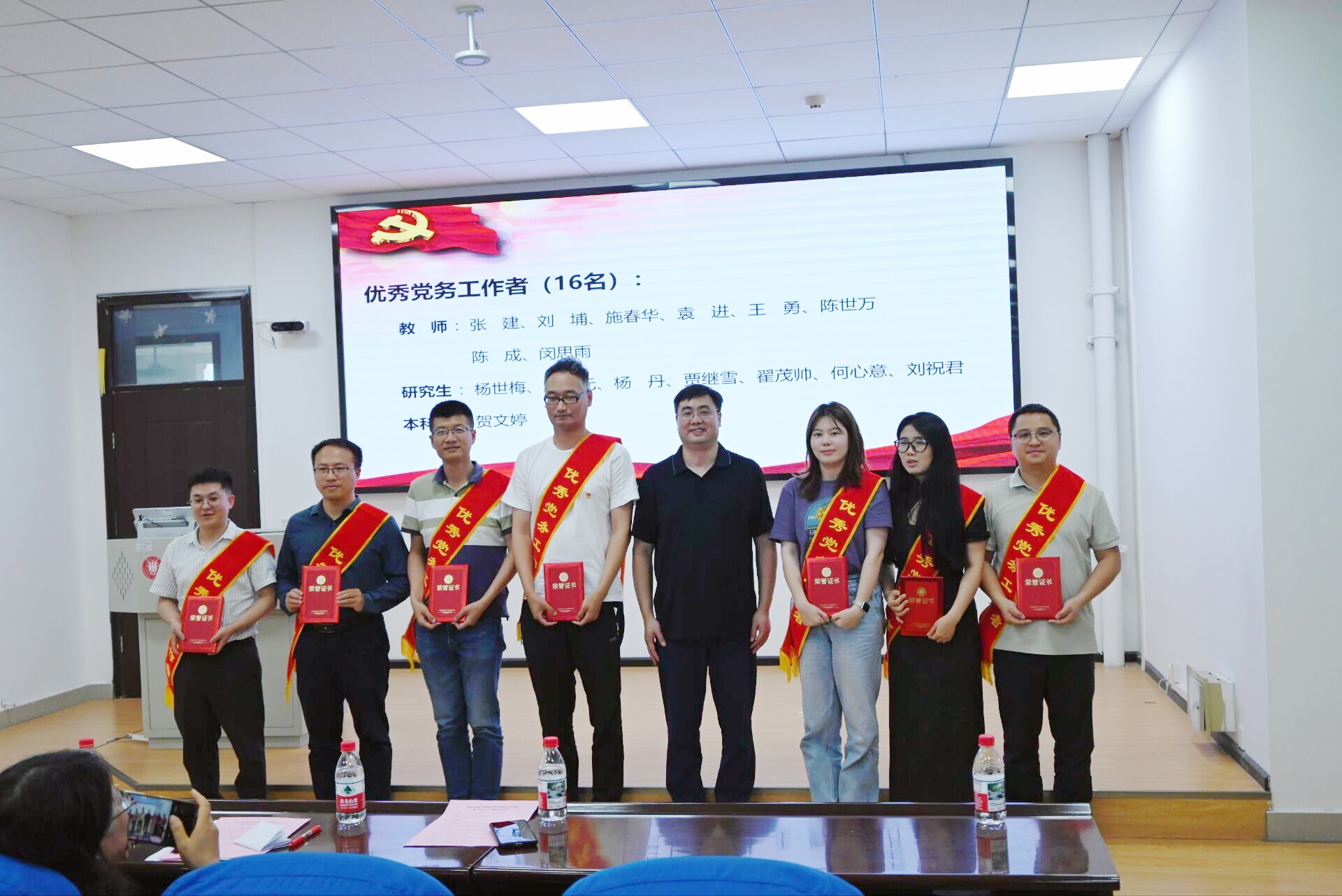 在表彰环节,陈义组织员宣读了《关于表彰优秀共产党员、优秀党务工作者和先进基层党组织的决定》。经各支部推荐、党委评审,共评选出26名优秀共产党员、16名优秀党务工作者,3个先进基层党组织。随后,陈义组织员为优秀共产党员颁发证书,付勇院长为优秀党务工作者颁发证书,李波书记为先进基层党组织代表授牌。获奖代表依次上台领奖,会场多次响起热烈掌声。