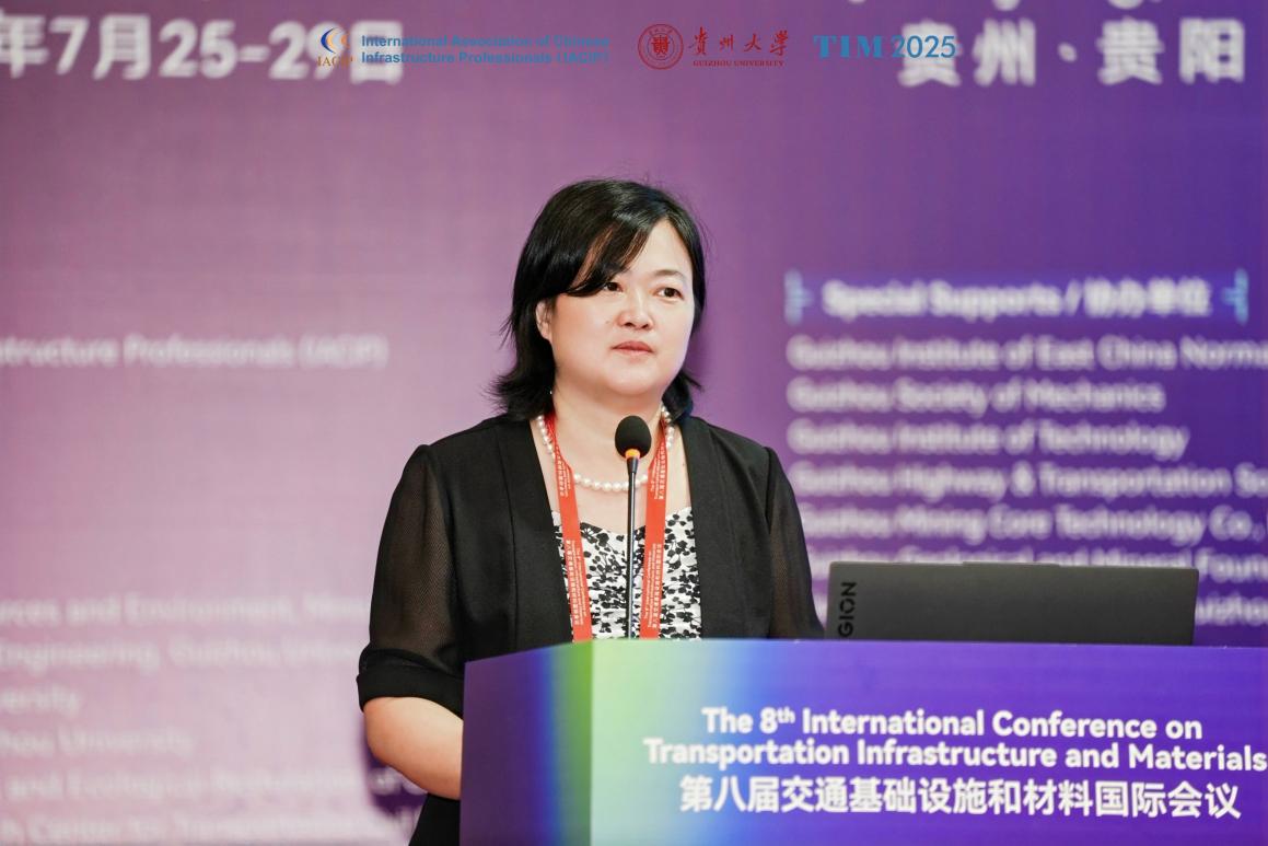 Jenny Liu教授代表IACIP发表了致辞,衷心感谢贵州大学的热情组织,感谢各合作院校的鼎力支持!预祝第八届交通基础设施和材料国际会议(TIM2025)取得圆满成功!祝愿各位嘉宾在贵阳期间学术交流深入、思想碰撞激烈、收获成果丰硕,并在这座“爽爽的”城市留下美好而难忘的回忆!