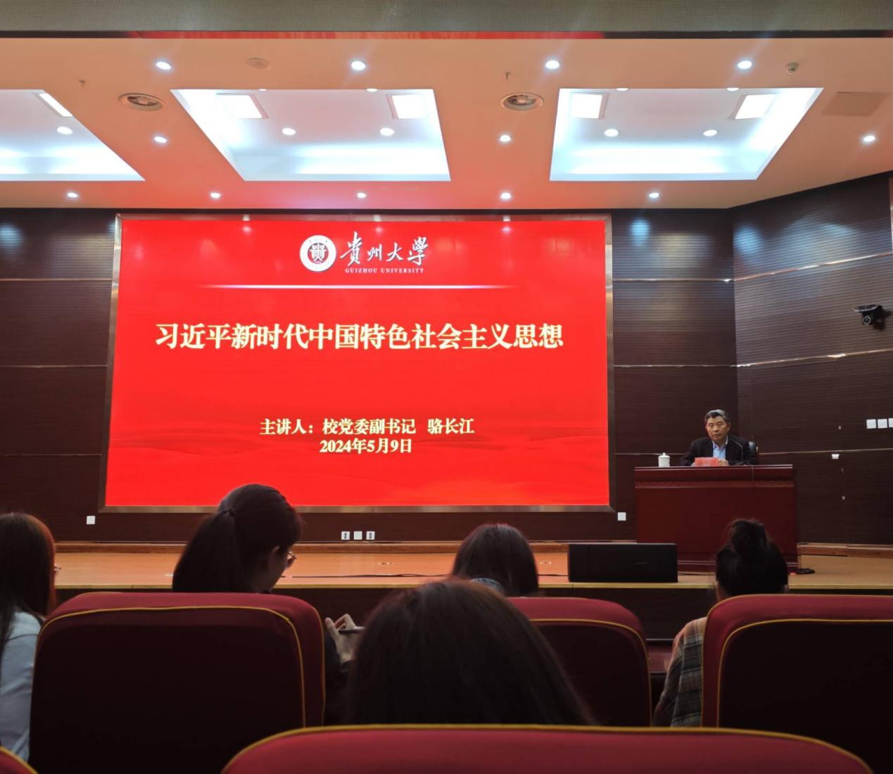 凝心聚力学思想,奋发有为勇争先。为深入学习贯彻习近平新时代中国特色社会主义思想,以学铸魂,以学增智,2024年5月9日晚,校党委副书记骆长江在贵州大学贤正楼107报告厅为动物科学学院、精细化工研究中心、旅游与文化产业学院、资源与环境工程学院的入党积极分子讲授《习近平新时代中国特色社会主义思想》专题党课。