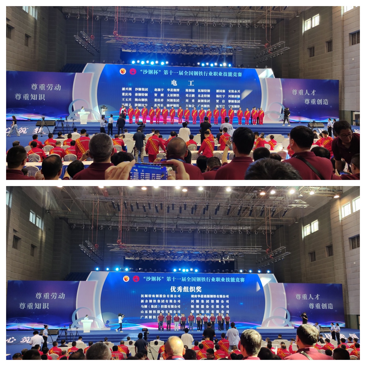 全国钢铁行业职业技能竞赛是钢铁行业规模最大、水平最高的赛事之一,每2年举行一届,被称为“钢铁奥运”。本届大赛于9月23日在江苏沙钢公司开赛,有来自全国25个省、直辖市、自治区的70家钢铁企业代表队的243名选手参赛。大赛设电工、起重装卸机械操作工、金属轧制工、高炉炼铁工4个工种。在为期三天比赛中,选手要完成理论考试和实际操作考核,通过智慧与技能的较量,争夺这一行业荣耀的巅峰。本届大赛围绕新时代钢铁行业“高端化”“绿色化”“智能化”目标,增设了VR排除安全隐患、无人天车等内容,其中,电工赛项定制设备实现全国产化。