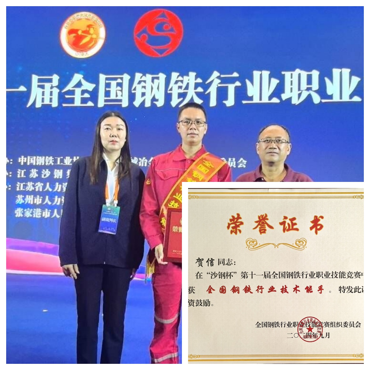 (自动化学院彭凯)9月27日,从“沙钢杯”第十一届全国钢铁行业职业技能竞赛传来好消息,由自动化学院负责强化赛前培训的攀钢西昌钢钒参赛选手,学校自动化学院2006级电气自动化专业毕业生贺信在电工赛项中取得优异成绩,斩获“全国钢铁行业技术能手”称号。