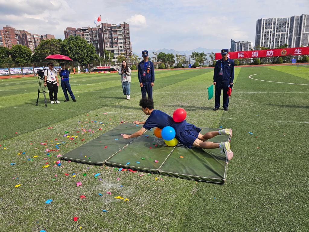 本次运动会共设置了4×100米接力、1人3盘水带连接竞赛、10×50米火场逃生技能接力赛、100米油盆灭火竞赛等7个比赛项目,将防灭火、消防器材使用、逃生自救等消防安全知识与竞赛相结合,让选手们在赛场上熟练掌握灭火逃生技能。学校参赛队员在训练和比赛中发扬团队的团结精神,发挥自己的特长,不怕苦、不怕累,不埋怨,为队友呐喊助威,退役学生陈涛在1人3盘水带连接竞赛表现突出,个人排第1团体成绩第3。
