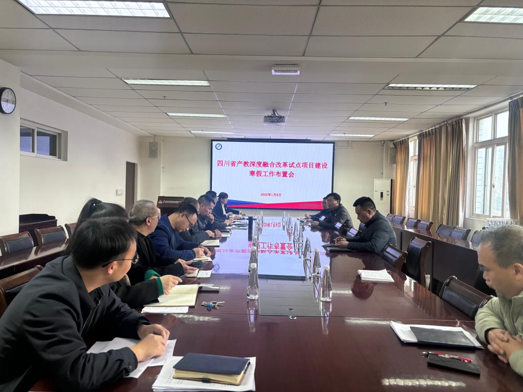 (教务处杨玻)为进一步推进四川省产教深度融合改革试点项目建设,确保寒假期间各项工作有序开展,1月8日上午,学校在一会议室召开寒假期间项目建设工作布置会,明确了寒假期间的工作方向和重点,为产教融合改革试点项目的推进奠定了坚实基础。副校长满海波主持会议,对按计划节点完成寒假期间项目建设任务提出要求。