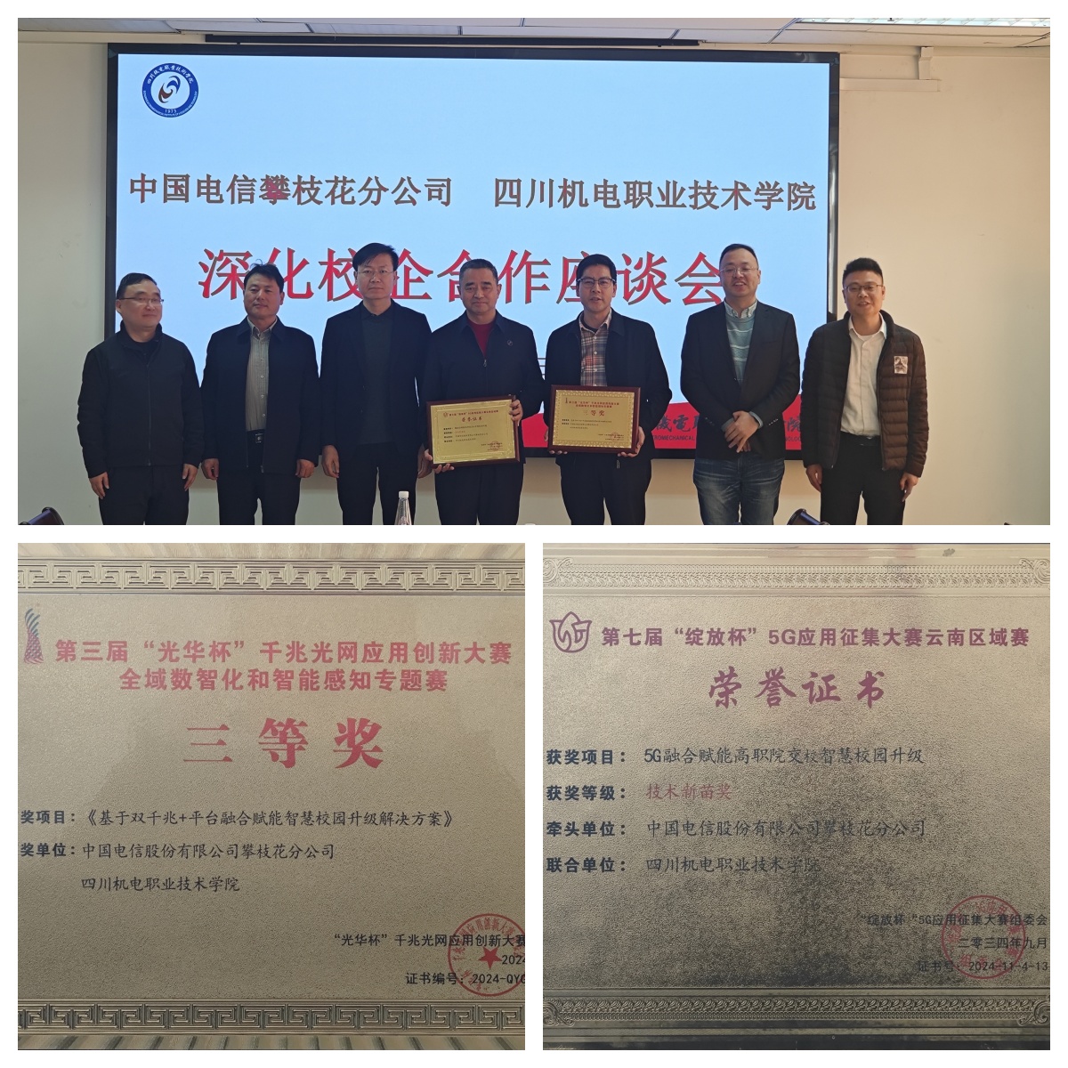 座谈会最后,中国电信攀枝花分公司向学校转赠了基于“智慧校园”建设项目申报的大赛获奖牌匾。