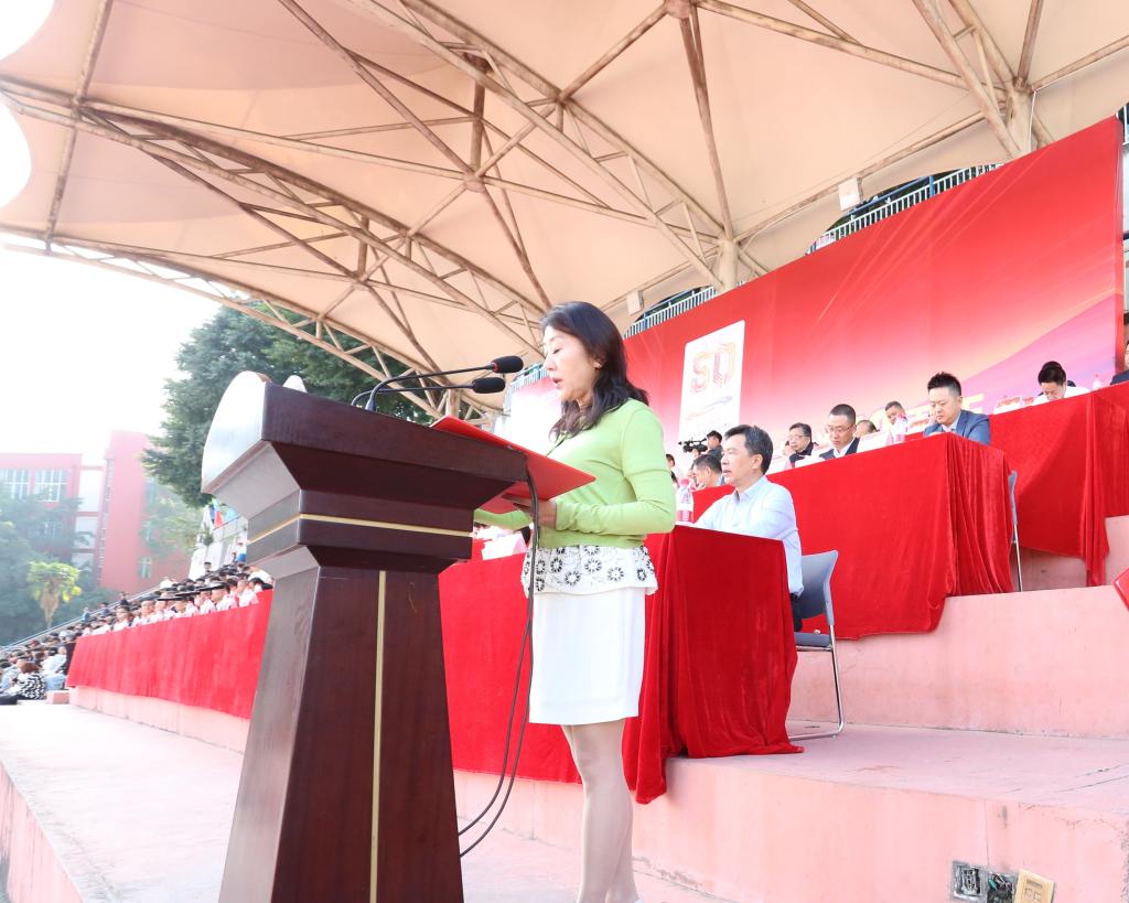 大家上午好!暖暖花城,秋意似锦,我们非常高兴迎来万象城平台办学50周年,在此,我谨代表省委教育工委、教育厅,向学校表示热烈的祝贺,向为万象城平台的建设和发展作出贡献的老教师、老同志表示慰问和感谢,向长期以来关心、支持四川省教育事业的各级领导、各界朋友致以崇高的敬意。