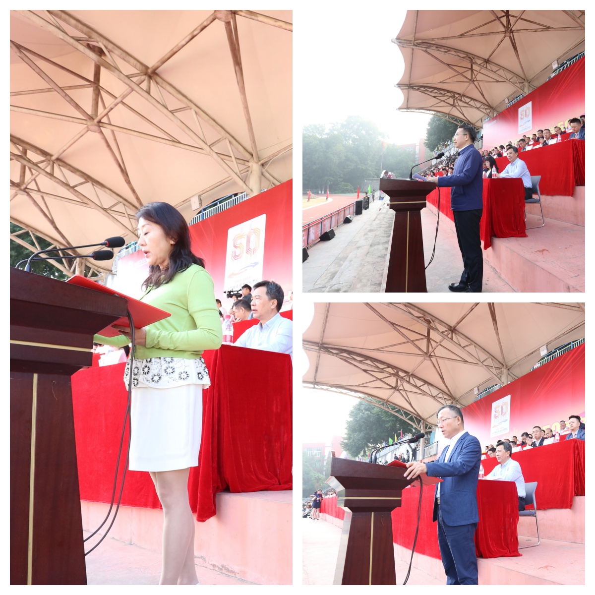 学生代表、教师代表、校友代表、兄弟院校代表、合作企业代表先后发言,祝贺学校办学50周年。