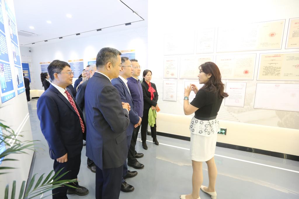 庆祝大会结束,石静、许军峰、王从庆等在学校领导陪同下参观校史馆。