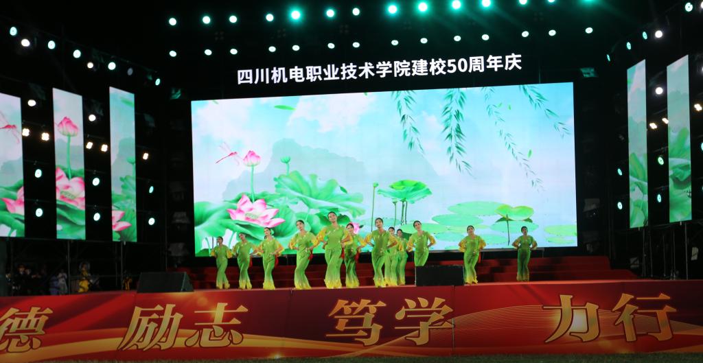 (综合管理部马琪)11月8日晚,学校50周年纪念日当天,学校在马家田校区运动场举行文艺晚会,展示学校学生素质教育成果,热烈庆祝学校建校50周年。院领导宋明华、陈勇、龙华洲、姚春早、满海波,攀钢部分子分公司负责人等嘉宾,部分返校参加50周年校庆活动的校友与师生员工一同观看完会,共襄盛举。