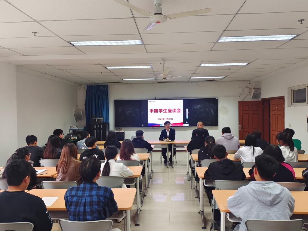 (教务处刘江祜)为加强与学生沟通交流,全面掌握2023—2024学年秋季学期开学以来的教学情况,及时发现并解决教学工作中存在的问题,促进教师改进教学,不断提高人才培养质量,11月21日学校在实训楼B4-1教室组织召开了半期学生座谈会,学校副校长满海波出席座谈会与学生代表交流,学校各二级学院2022级、2023级学生代表参加座谈会。