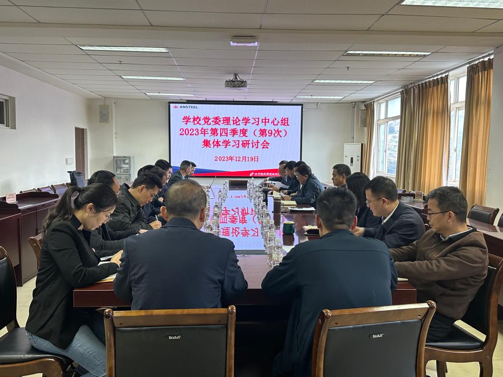 (综合管理部马琪、图解晶)按照集团公司党委要求,为把学习贯彻习近平新时代中国特色社会主义思想主线贯穿主题教育始终,打牢开好专题民主生活会的思想基础,12月19日上午,学校党委理论学习中心组在一会议室召开第九次专题扩大学习会,深入学习贯彻习近平新时代中国特色社会主义思想,切实加强党的建设,推动以学铸魂、以学增智、以学正风、以学促干,更好把学习成效转化为推动学校可持续发展的生动实践。党委书记宋明华主持学习会、领学习近平总书记关于以学铸魂、以学增智、以学正风、以学促干等重要论述,习近平总书记来川视察重要指示精神并作总结讲话;党委中心组成员王光涛领学习近平总书记对党的建设和组织工作作出的重要指示,习近平总书记关于党的建设的重要思想;党委中心组成员陈勇领学习近平总书记关于严肃党内政治生活的重要讲话和重要指示批示精神,《中共鞍钢纪委 鞍钢党委组织部 鞍钢集团党委学习贯彻习近平新时代中国特色社会主义思想主题教育领导小组关于在学习贯彻习近平新时代中国特色社会主义思想主题教育中开好专题民主生活会的通知》精神;党委中心组成员李小刚领学《中央八项规定出台十一周年教育学习有关资料精神》;党委中心组成员黄伟领学四川省委十二届四次全会精神。党委中心组成员陈勇、满海波、丁亚霖聚焦本次研讨主题,作重点交流发言。