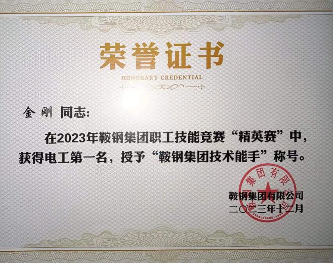 (自动化学院彭凯)笔者获悉,在日前举行的鞍钢集团2023年度总结表彰大会上,代表攀钢参加2023年鞍钢集团职工技能精英赛,斩获电工第一名,由我校自动化学院强化培训的学员金刚,被授予“鞍钢集团技术能手”称号,充分彰显了学院校企一体、产教融合特色,展示了学院职业技能培训的高质量。