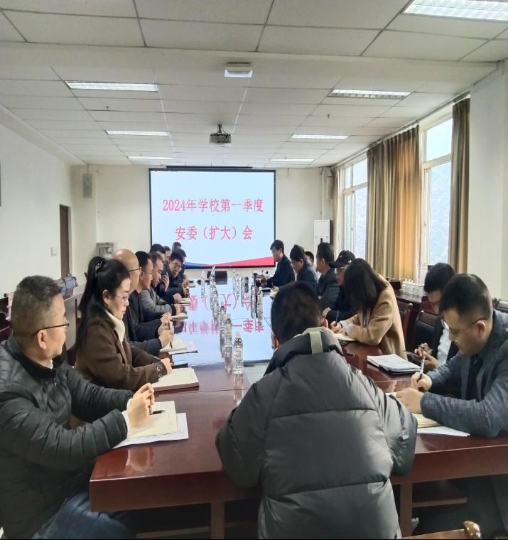 (综合管理部马琪、安全保卫部杨升)新年伊始,为切实压紧压实各二级学院、部门安全责任,确保校园平安,1月8日上午,学校在一会议室召开2024年第一季度安委会扩大会议,传达学习《攀钢集团有限公司2024年安全工作要点》和《攀钢集团有限公司2024年生态环境保护工作要点》,总结学校2023年度安全环保工作,安排部署学校2024年安全环保重点工作。党委书记宋明华出席会议并讲话,强调安全责任重于泰山,对各部门、各二级学院做好安全环保工作提出要求;学校安委会主任、校长王光涛主持会议,强调各部门、各二级学院要切实履行校园安全“一岗双责”责任,要切实做到意识到位、责任到位、工作到位,切实做到警钟长鸣,确保师生员工安全、校园平安。校领导陈勇、龙华洲、姚春早、满海波出席会议。